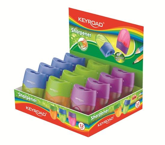 Pestrobarevné plastové ořezávátko s průhledným kontejnerem pro viditelné množství odřezků. 2 otvory o průměru 8 mm a 11 mm. Ergonomický tvar umožňuje snadné držení. Dodávané v barevném mixu.