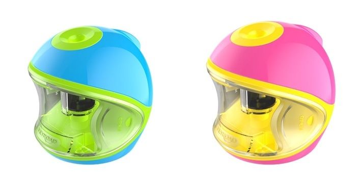 Stolní ořezávátko na baterie s vysokokapacitním kontejnerem ve tvaru helmy pro rychlé a bezpečné ořezávání bez námahy. Dokonale ořezává kulaté, trojhranné i hexagonální tužky či pastelky o průměru 7-8 mm. Napájeno dvěma tužkovými bateriemi AA. Snadno vyměnitelná náhradní ořezávátka (nejsou součástí balení). Ořezávátko má zespoda protiskluzové podložky sloužící i jako ochrana proti poškození nábytku. Díky ergonomickému tvaru se během ořezávání snadno přidržuje.