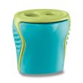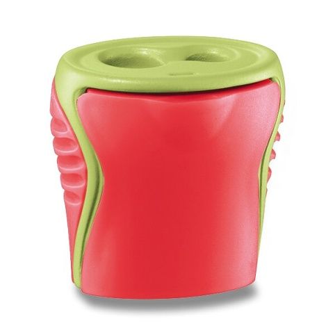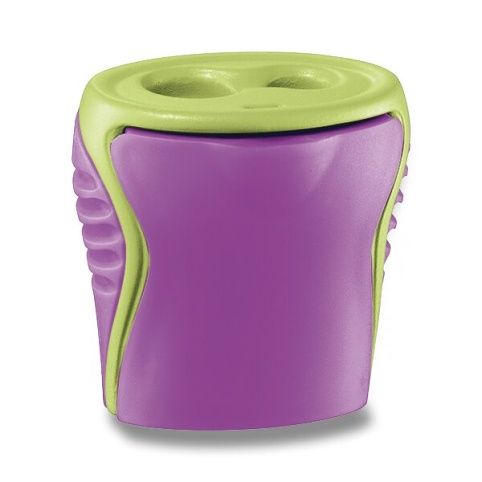 Plastové ořezávátko s odpadní nádobkou a 2 otvory. Ochranné, pevně uchycené uzavírání zabraňuje špinění, ideální do penálu. Odolné proti otřesům.