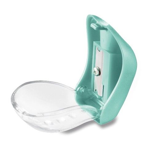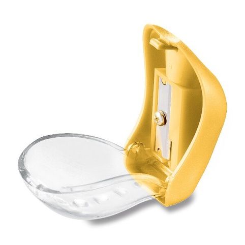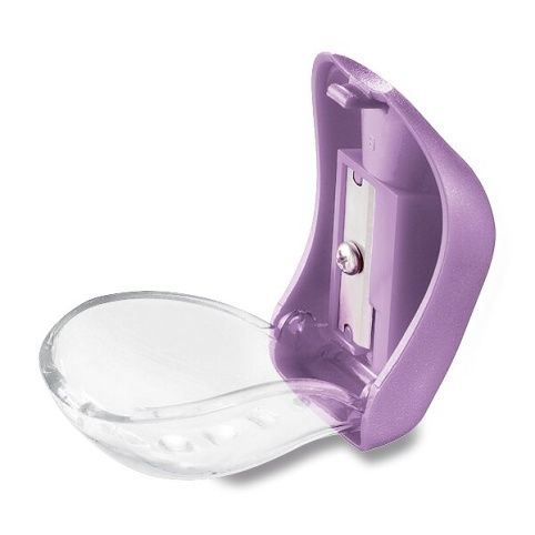 Plastové ořezávátko s odpadní nádobkou a 1 otvorem. Otevírání s pantem. Malá nádobka, ideální do penálu.
