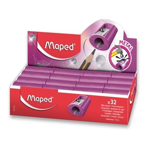 Kulaté kovové ořezávátko Maped s 1 otvorem bez odpadní nádobky.
