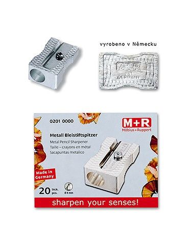 Vysoce kvalitní ořezávátko německé firmy M+R na 1 tužku. Tělo ořezávátka z magnesia. Ergonomický tvar ořezávátka se dobře drží a je vhodný i do penálu - nevypadává ze smyčky. Nerezová úprava nožíku. Přesné dílenské zpracování zaručuje kvalitní ořezávání.