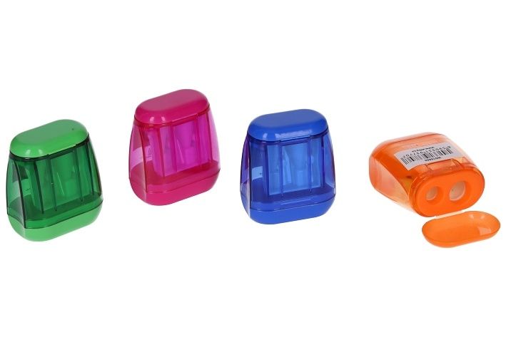 Ořezávátko na dvě tužky se zásobníkem - 4 barvy