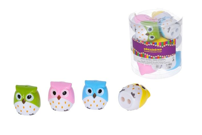 Ořezávátko na dvě tužky se zásobníkem o velikosti 4,5x4x4,5 cm Sova.