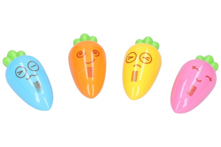 Ořezávátko na jednu tužku ve tvaru mrkve.