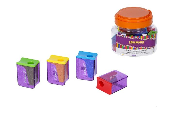 Ořezávátko na jednu tužku se zásobníkem - 4 barvy