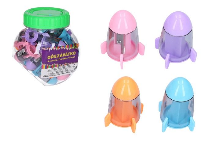 Ořezávátko na jednu tužku se zásobníkem + guma - vesmírná loď.