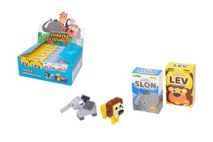 Ořezávátko na jednu tužku ve tvaru zvířátek - lev a slon.