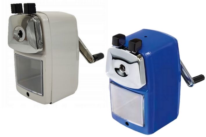 Ořezávátko stolní- ruční celokovové. Lze nastavit více stupňů ostrosti tuhy. Vytáhněte upínací desku, stlačte mechanismus a vložte tužku. Po ořezání opět stlačte a vyndejte tužku.