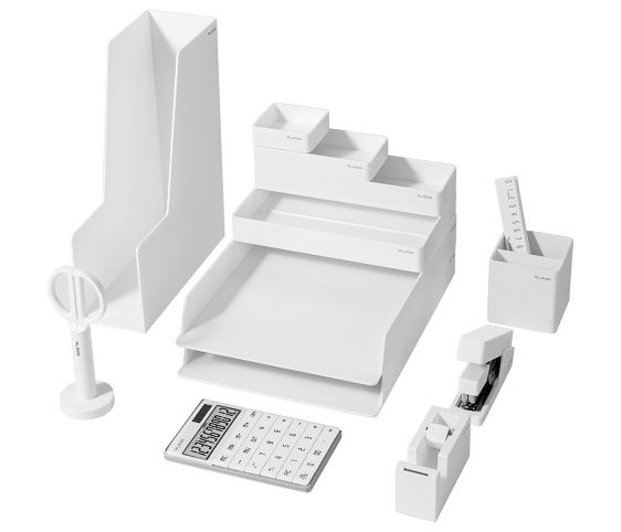 Moderní designová sada organizérů a kancelářských potřeb- obsahuje nůžky 18cm ve stojánku, pravítko 15cm, kalkulačku, 6 stolních úložných organizérů, stojánek na psací potřeby, úložný box na dokumenty, odvíječ lepicí pásky do 18mm a beznámahovou sešívačku (25 listů, drátky 24/6, 26/6)- modulární design úložných organizérů pro volný styl organizace- sada obsahuje 13ks- materiál: plast- rozměr odkládací zásuvka: 32,4×24×4,5cm- rozměr box na dokumenty: 25x31x9,6cm- rozměr box 1: 24x15,2x4,5cm- rozměr box 2: 7,6x7,6x4,5cm- rozměr box 3: 15,2x7,6x4,5cm- rozměr box 4: 22,8x7,6x4x5cm- barva: bílá