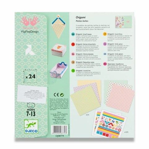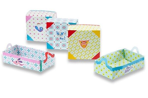 Kreativní sada pro výrobu krabiček technikou skládání origami. Krabičky jsou vhodné pro uchovávání drobností či balení dárků.