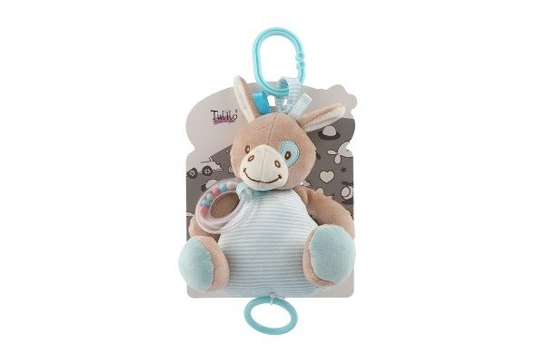 Osel/oslík natahovací hrací strojek chrastítko plyš 16x18cm tyrkysový na kartě v sáčku 0+