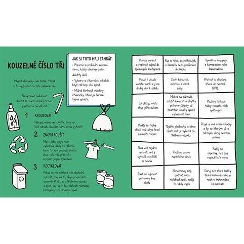 Netradiční knížka obsahuje 96 stran plných zajímavých informací, nápadů a aktivit k ochraně životního prostředí.