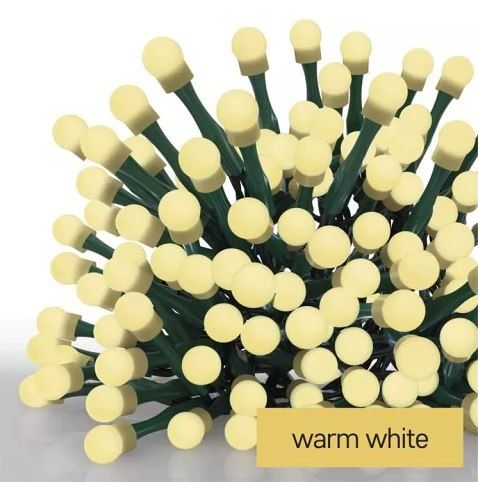 Vánoční řetěz z LED diod Cherry, teplá bílá. Vhodné do interiéru i exteriéru.Norma IP44 zajišťuje celkové krytí optické i elektrické části.Barva světla: teplá bílá.Tvar: kulička.Funkce: svítí.Počet LED: 200.Pro výšku stromu: 210 cm.LED mezera: 10 cm.Barva drátu: zelená.Typ napájení: síťový adaptér 230 V AC.Délka řetězu: 20 m.Délka přívodního kabelu: 5 m.Příkon 6 W. Položka obsahuje funkci časovače: svítí stále6 hodin zapnuto, 18 hodin vypnuto (opakuje se, dokud jej nevypnete)vypnuto
