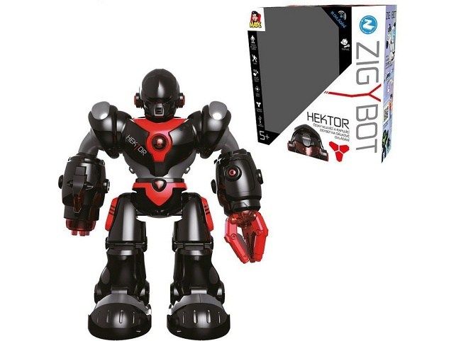 Robot Hektor, další přírůstek do kolekce Zigybotů. Mluví česky a pohybuje se. Kromě několika vět umí i rapovat a vyzvat protivníka na rap battle (verbální souboj raperů). Bojovou sekvenci uvede tradičním maorským tancem Haka. Další dovedností Hektora je beatbox (tedy napodobení perkusí ústy, bez pomocí hudebního nástroje). Pokud by to bylo málo umí Hektor zamotat hlavu i komplikovanými jazykolamy a to v češtině i angličtině. Hektor je ovládaný dálkovým ovladačem. Pohyb je také možné naprogramovat. Český box. Klíčové vlastnosti:Infračervené ovládání, taneční sekvence, pohyb rukou i nohou, funkční kanón střílí šipky s přísavkou, česky rapuje a umí beatbox, pohybuje se do všech směrů, programování pohybu, svítící pohyblivé oči, světelné efekty, ovládání hlasitosti, funkční klepeto s barevným světlem, bojové sekvence, zvládá obtížné jazykolamy, USB nabíjení. Rozměry boxu: 39 x 42 x 15 cm. Napájení: baterie - ovladač 2 x 1,5 V AAA (nejsou součástí); Robot 3. 7 V nabíjecí (jsou součástí)Vhodné pro děti od 5 let