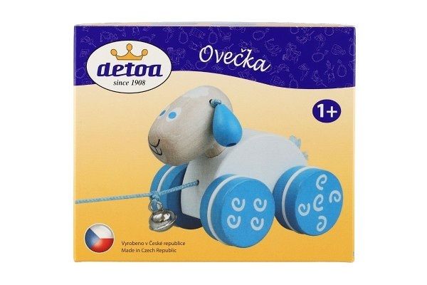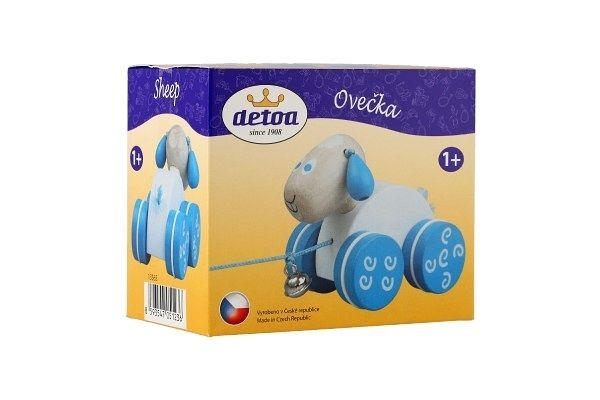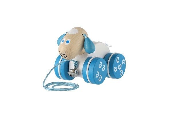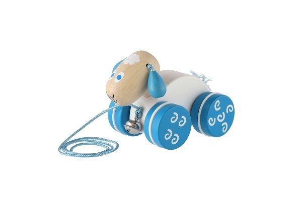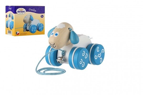 Tahací hračka s rolničkou v podobě ovečky. Ovečka doprovází děti při jejich prvních krůčcích. Velikost ovečky 13 x 9 cm.