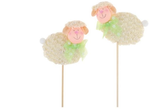 Ovečka 3D se zelenou mašlí zápich 7cm + špejle.
