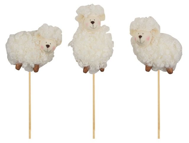 Ovečka bílá kudrnatá zápich 8 cm + špejle