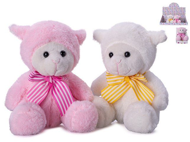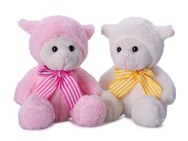 Ovečka plyšová 15cm sedící s mašlí 2barvy v krabičce