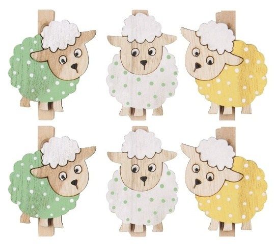 Ovečky dřevěné na kolíčku 4cm, 6 ks