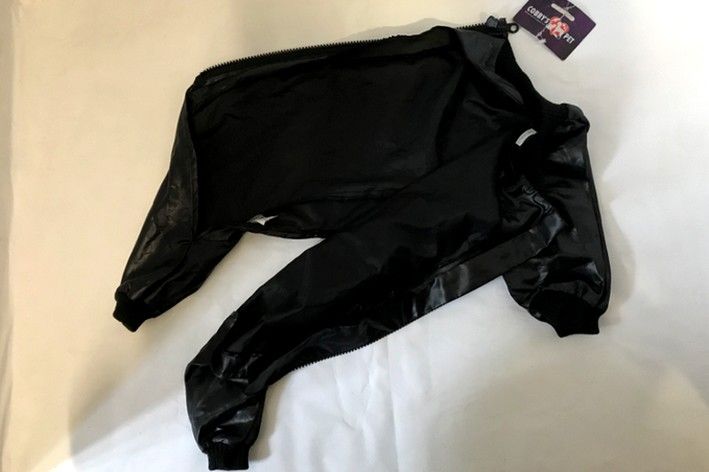 Délka na hřbetu (po celé délce je zip): 35cm. Celková délka cca 46cm. Návleky na přední tlapky: cca 14cm, zadní tlapky cca 17cm.
