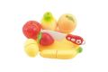 Krájecí ovoce je vhodné pro holčičky, které si rády hrají na kuchařky nebo na prodavačky. Jednotlivé dílky ovoce jsou spojeny suchým zipem a je možné je jednoduše "krájet" přiloženým nožíkem. Sada obsahuje různé druhy ovoce, prkénko a nožík.