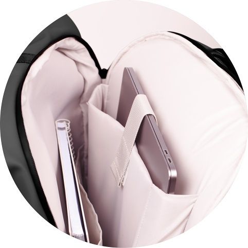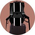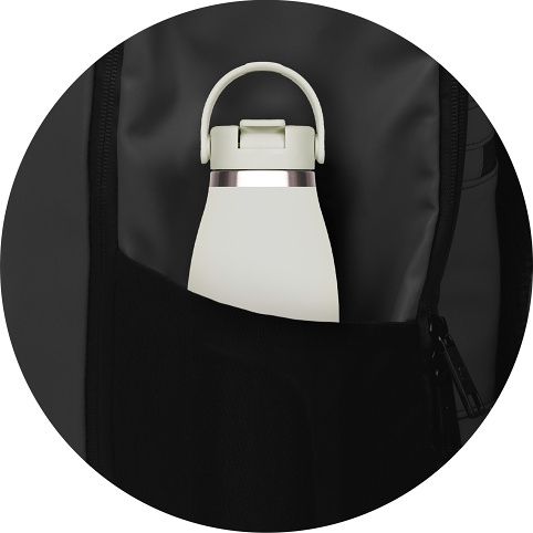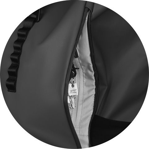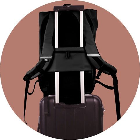 24 litrů, 48 x 32 x 10 cm, PU, ergonomicky polstrovaná záda a madla, reflexní logo a prvky, voděodolný materiál a zip, možnost batoh srolovat pro přizpůsobení obsahu, uzavírání na klip, nastavitelné zapínání na hrudi na klip, kapsa na laptop a na láhev, přihrádka na oblečení a osobní věci, plastové nožky zespodu batohu