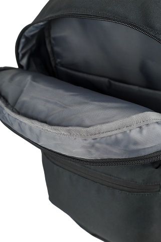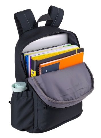 Velká hlavní přihrádka a vyztužená kapsa na notebook, menší kapsa vpředu a dvě boční. Zpevněné dno batohu. Vyztužená, prošívaná záda, nastavitelné ramenní popruhy. Polyester, 42 x 29 x 17 cm, 18 l