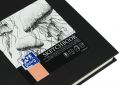 Pro kreslení suchými technikami: tužkou, fixem, grafitem, stylusem, pastelkami a uhlem, vyztužený, šitý hřbet, recyklovatelný papír, 100 g/m2, bez kyselin, certifikace FSC