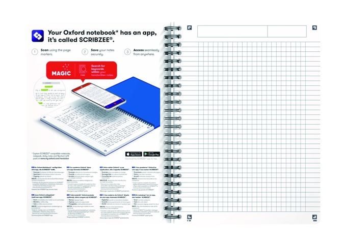 Na dvojité šedé spirále, desky z jemného, laminovaného kartonu, flexibilní, kompatibilní se SCRIBZEE, bílý, dokonale hladký papír Optik Paper+, nepropíjí, certifikace EU Ecolabel