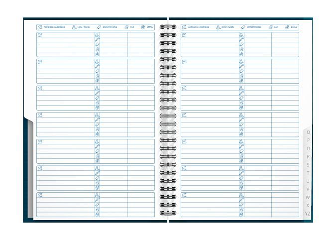 Na dvojité šedé spirále, desky z jemného, laminovaného kartonu, s indexy A-Z, flexibilní, bílý, dokonale hladký papír Optik Paper+, nepropíjí