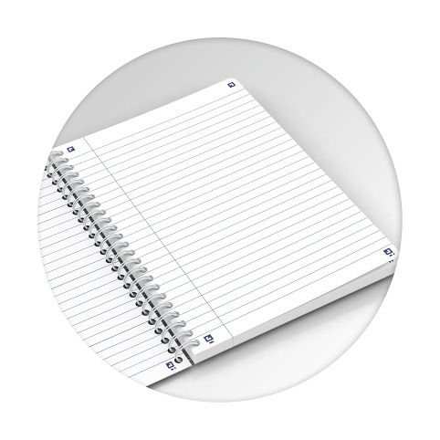 Na dvojité bílé spirále, desky z kartonu se soft touch povrchem, flexibilní, kompatibilní se SCRIBZEE, extra bílý, dokonale hladký papír Optik Paper+, který nepropíjí, cert. EU Ecolabel