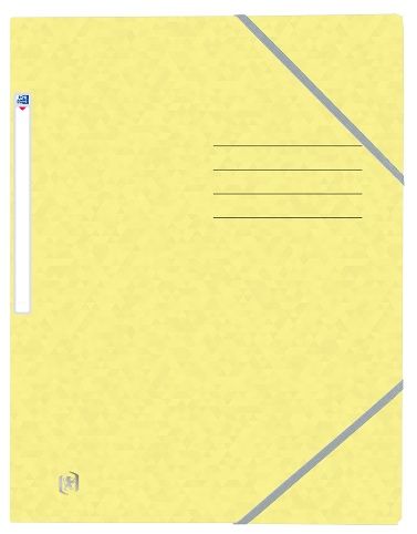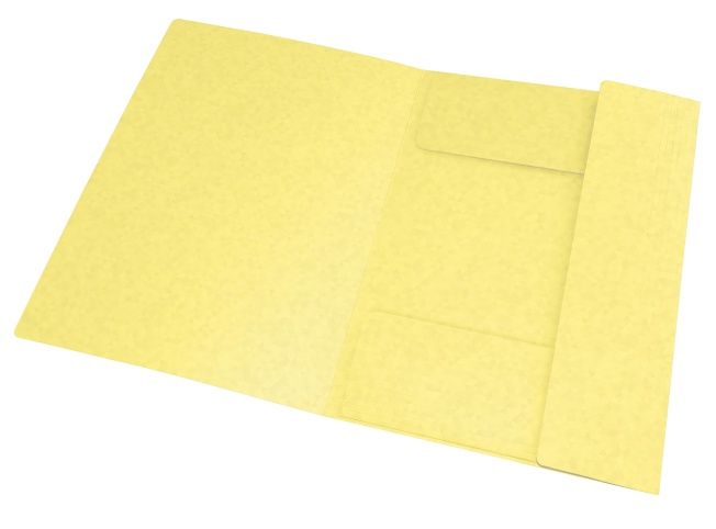 Světle žluté, prešpánové, 3 chlopně, karton 390 g/m2. Kapacita až 200 listů. Praktické uzavírání na gumičku. Hřbetní štítek.