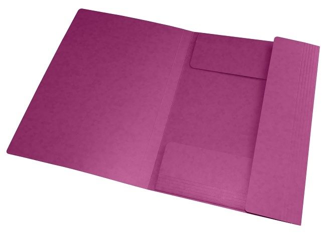 Fialové, prešpánové, 3 chlopně, karton 390 g/m2. Kapacita až 200 listů. Praktické uzavírání na gumičku. Hřbetní štítek.