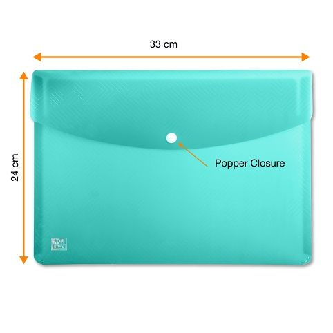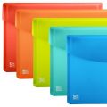 Transparentní PP o síle 300 mikronů. Zavírání jedním drukem. Zaoblené rohy se starají o bezpečnost jak psacího stolu, vnitřku tašky nebo dokonce oblečení, mix barev