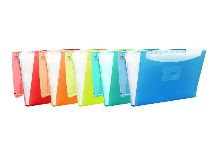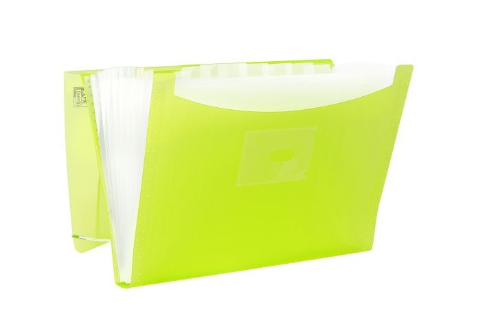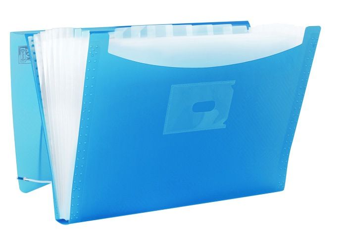 PP, s průsvitnými přihrádkami, 12 popisovacích štítků, uzávěr gumičkou na plastový kroužek, hřbetní štítek, mix barev.