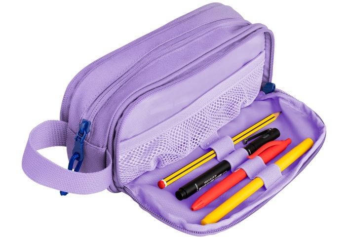 Polyester, 22 x 9,5 x 7 cm,2 uzavíratelné kapsy na zip. Zip s plným otevíráním. Vnitřní podšívka z textilní tkaniny sladěné s barvou penálu. Rukojeť pro snadnou přepravu. Recyklovaný materiál RPET.