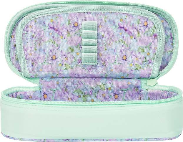 Voděodolná polyesterová tkanina, květinová podšívka uvnitř pouzdra. Klopa s integrovanou kapsou a poutky na pero. Hlavní kapsa na zip. 23,5 x 8,5 x 5 cm