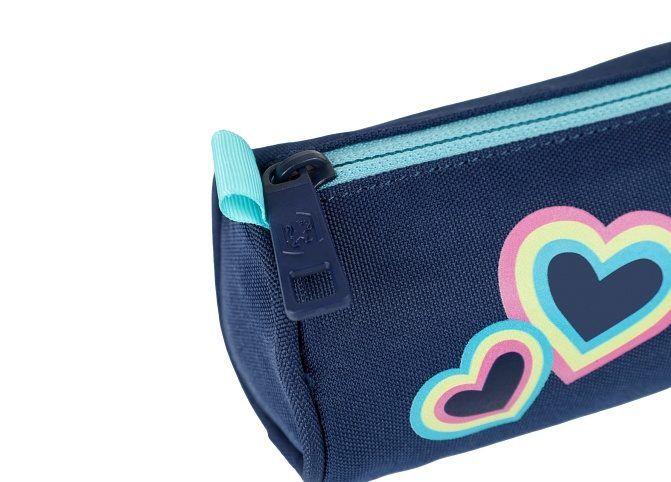 S potiskem srdce. Z recyklovaného polyesteru. Délka: 22 cm x výška: 9,5 cm x hloubka: 9,5 cm se zapínáním na zip. Je také skvělým doplňkem.