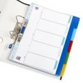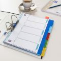 Vyrobeno z barevného, pevného a pružného PP. Univerzální perforace, 5 distančních vložek. Tmavě a světle modrá, červená, zelená, žlutá