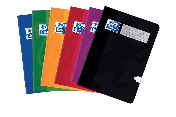 V šité vazbě. Měkké, vysoce odolné laminované desky s logem značky Oxford. Na první stránce sešitu místo na údaje o uživateli. Mix barev, Optik Paper