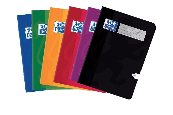 V šité vazbě. Měkké, vysoce odolné laminované desky s logem značky Oxford. Na první stránce sešitu místo na údaje o uživateli. Mix barev,