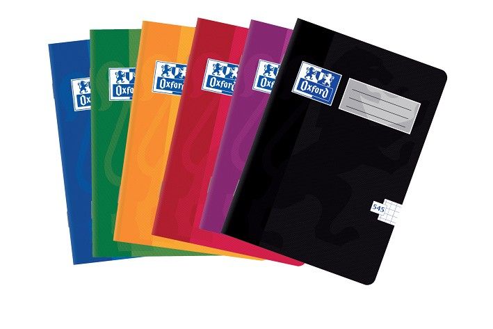 V šité vazbě. Měkké, vysoce odolné laminované desky s logem značky Oxford. Na první stránce sešitu místo na údaje o uživateli. Mix barev, Optik Paper