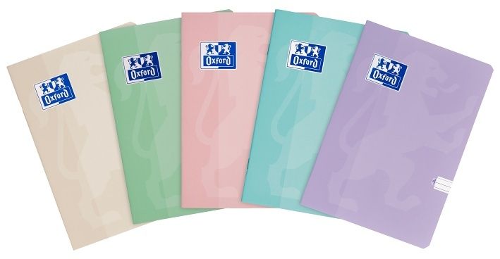 V šité vazbě. Měkké, vysoce odolné laminované desky s logem značky Oxford. Mix pastelových barev, Optik Paper
