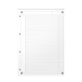 Zápisník prémiové kvality prošitý v horní části, laminované desky s hladkým povrchem, pevná zadní deska. Stránky jsou perforované, děrování pro zakládání do pořadače. OP