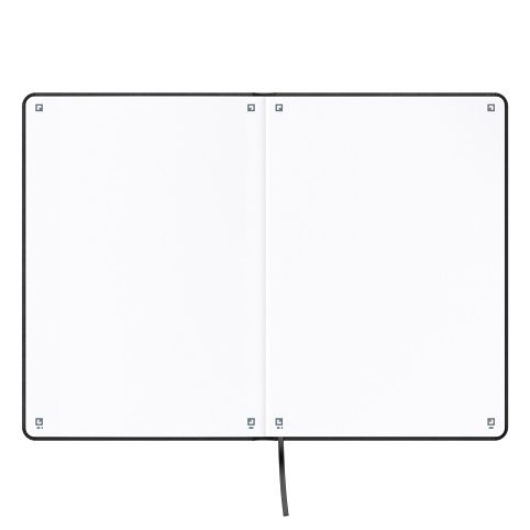 Silné, pevné desky chránící obsah, šité stránky odolné proti manipulaci. Se záložkou, gumičkou a kapsou. 80 listů, Optik Paper, černý