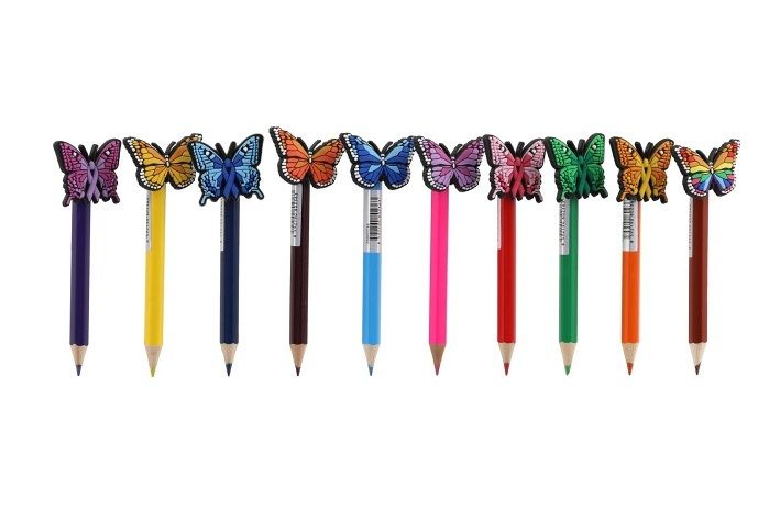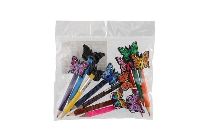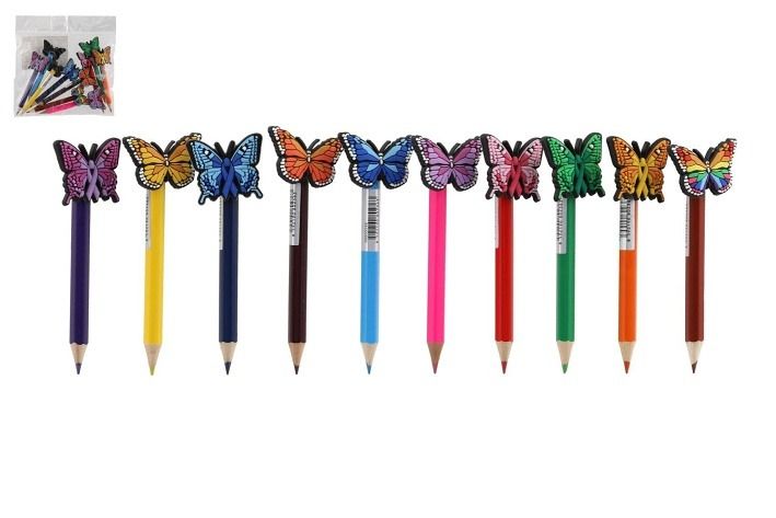 Ozdoba na pastelku s motivem motýlka. Označte si své psací potřeby, nebo věnujte někomu jako dárek. Bonusem je pastelka. Baleno po 10 ks.