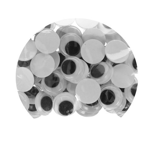 Oči s pohyblivou zorničkou - polotovar pro výtvarnou práci. Kulatý tvar očí. Zadní strana samolepicí. Určeno pro výrobu dekorací, výtvarné a pedagogické aktivity.