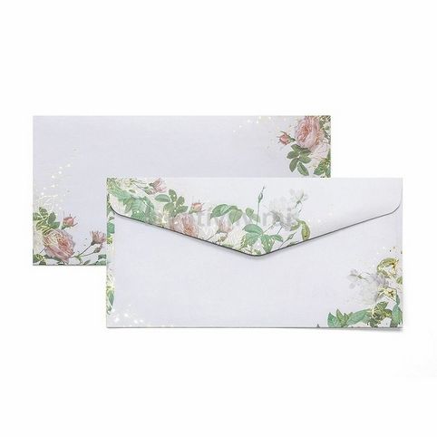 Ozdobné obálky - DL, 120 g/m2, bílé, vzor růže, 10 ks