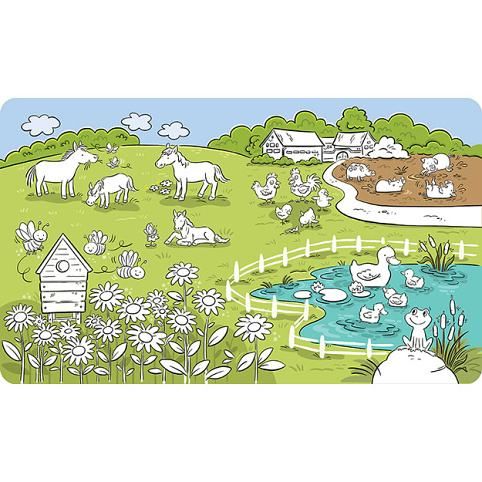 The title contains 10 coloured pictures. Colour appears after the application of water anddisappears after drying, so the pictures can be used again and again. A water pen is included.
